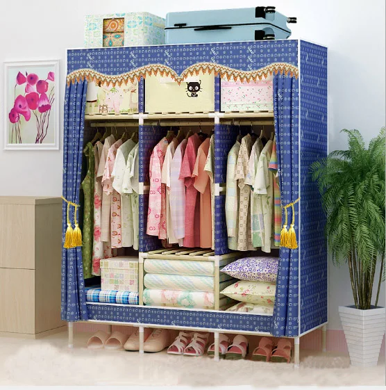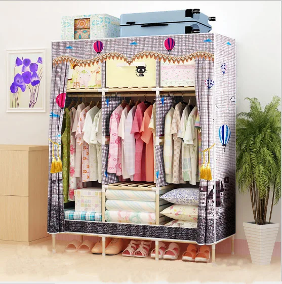 Wardrobe White Luxury Modern PP Plastic Wardrobe Bedroom Clothes Storage Closet Coat Cabinet Metal Frame Hanging Wardrobe B534